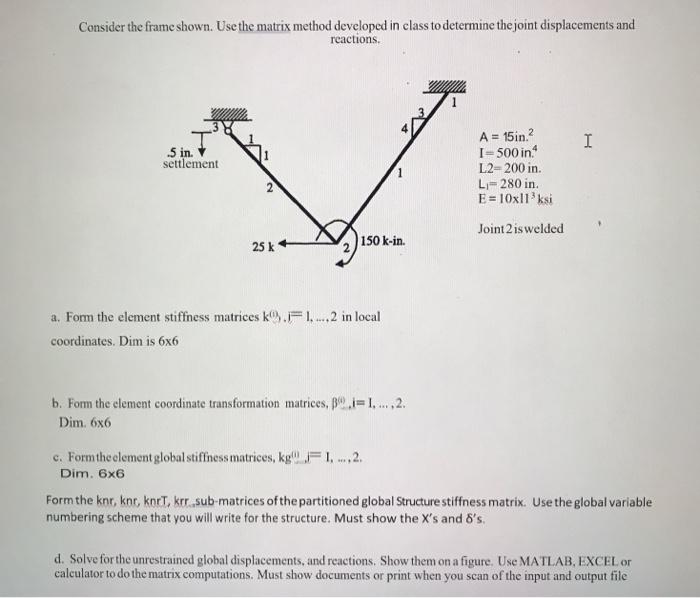 Solved Consider The Frame Shown Use The Matrix Method Chegg Com